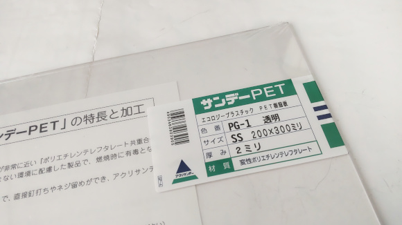 | (毎度お馴染みの2mm厚の透明PET樹脂板) | |