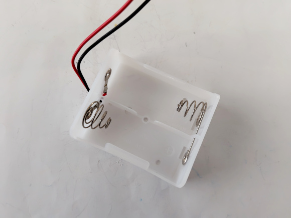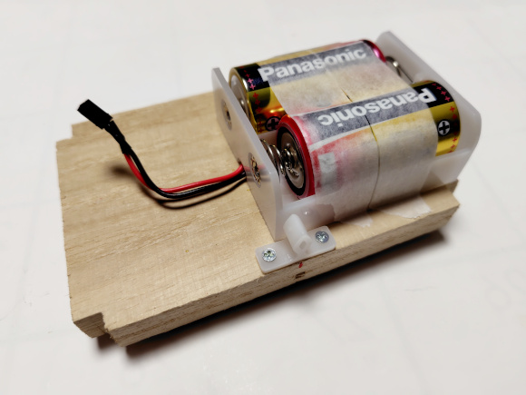 | 単二電池は重たくて電池ボックスから外れやすいので、テーピングしておくと良いと思います。 | |