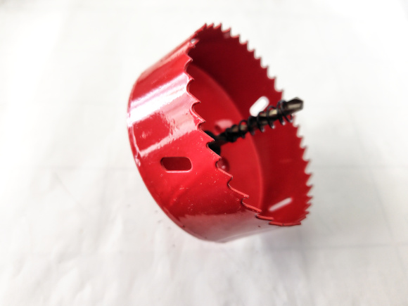 | やっぱりこの歳になると自由錐で合板に穴を開けるのはしんどいです。そこでホールソーなんですね。口径が異なる毎に購入が必要ですが、穴あけ加工はとても楽です。 | |