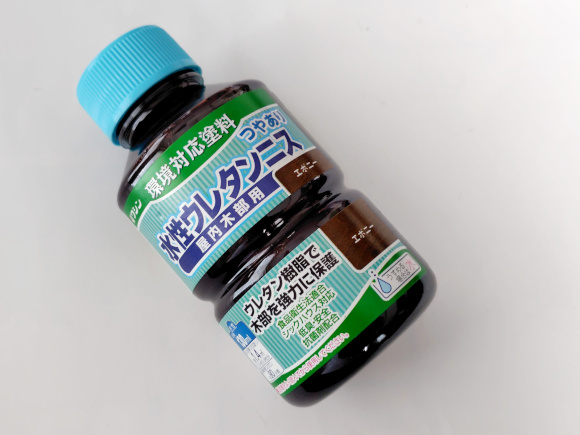 | 今回はエボニー色にしました。再度#400の紙やすりで下地を整えてから2回塗り、更に#400で整えて2回塗りです。 | |